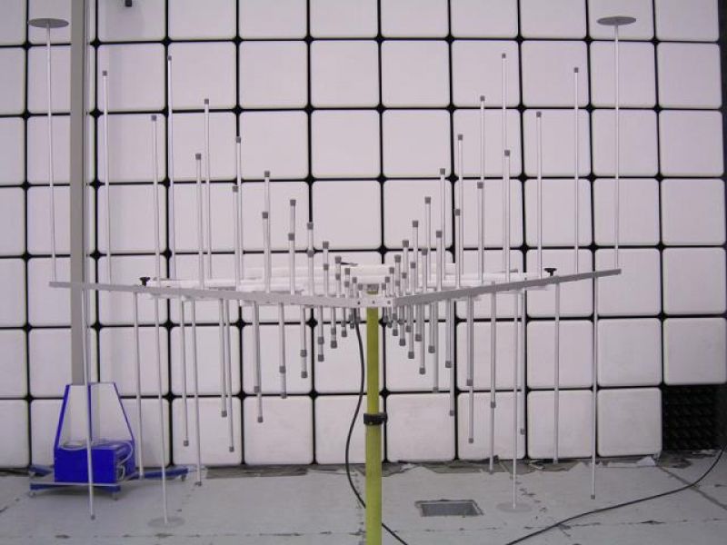 The stacked Log Periodic Dipole Antenna (Stacked LPDA) consists of two ordinary Log.-Per. structures. The excellent characteristics (flat gain over a large bandwidth, low SWR) of the ordinary LPDA designs could be maintained using the stacked LPDA design. The stacked design helps to focus the directional pattern of the H-plane somewhat, resulting in a typical gain improvement of 2.0 dB compared to an ordinary LP antenna. This is especially important for immunity testing, where a maximum fieldstrength and a good field uniformity is required. The beamwidth in the E-plane and the H-plane are nearly identical, providing an optimised illumination of the EuT with minimised ground reflection influence.Further the cross polar rejection of the STLP 9128 E is excellent. The fastlinks allows to disassemble the rear elements without any need for further tools within a few seconds. These fastlinks divide the antenna into five parts, which can be stored and transported easily.